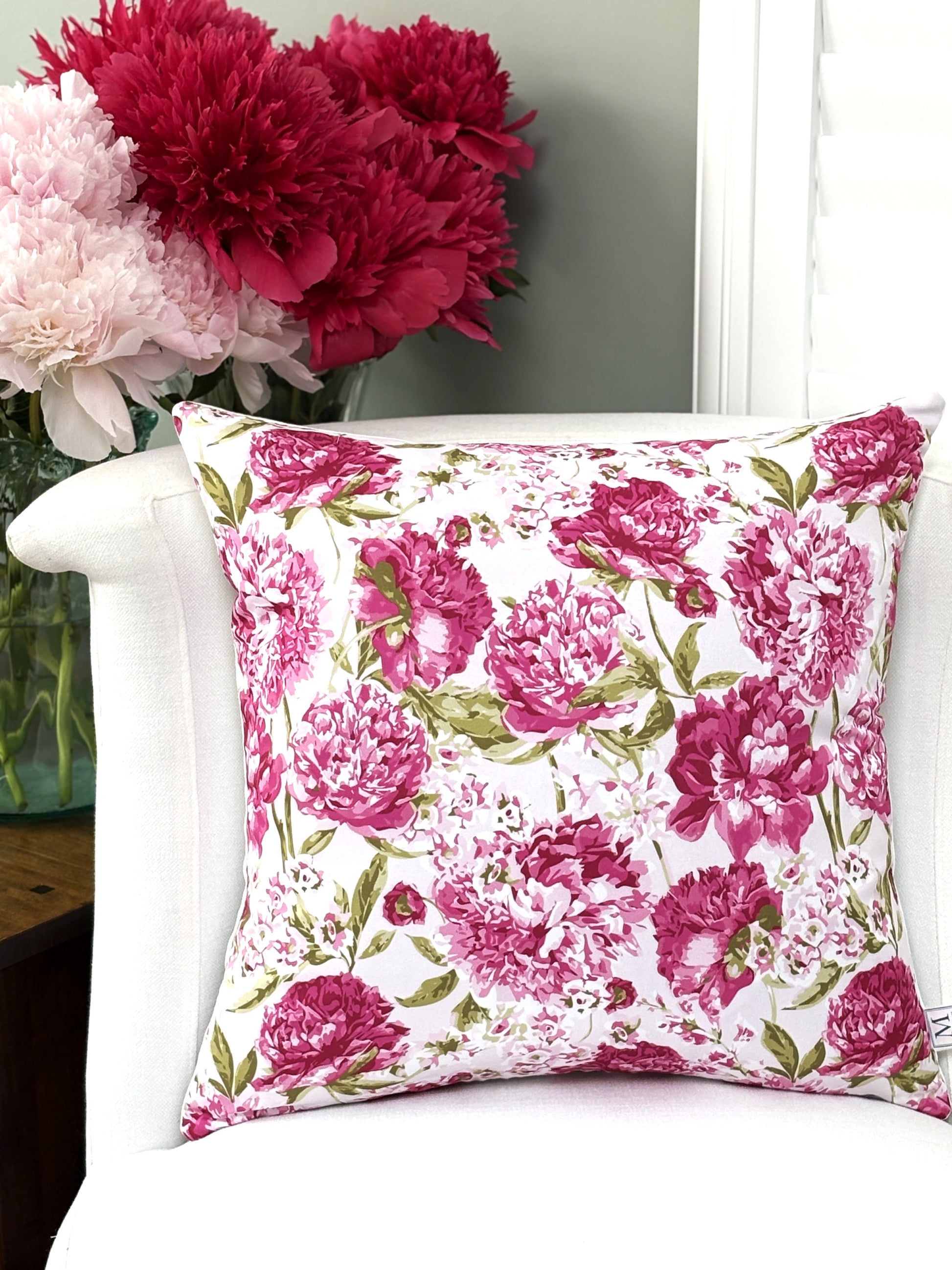 Part of our Botanical Collection, the Peony cushion is bursting with lush pink blooms and soft green leaves, bringing the romance of a flower-filled garden indoors — no matter the season.
